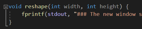 reshape은 glutReshapeFunc이 reshape event를 처리하기 위해 인자로 호출하는 함수이다.