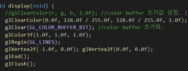 그런데 위 사진처럼 r, g, b변수가 인자인 glClearColor 를 지우고